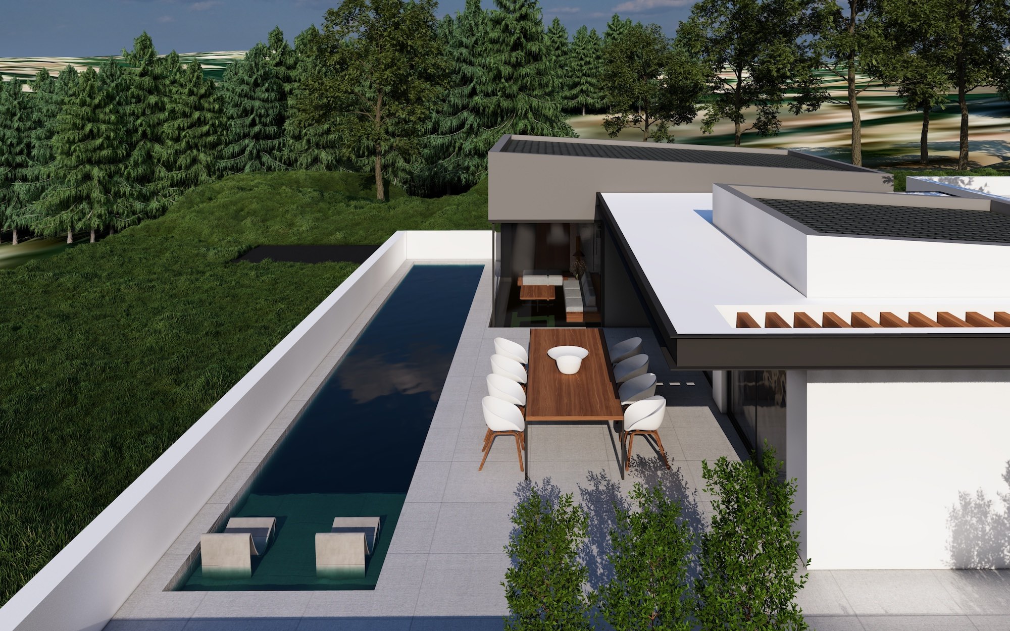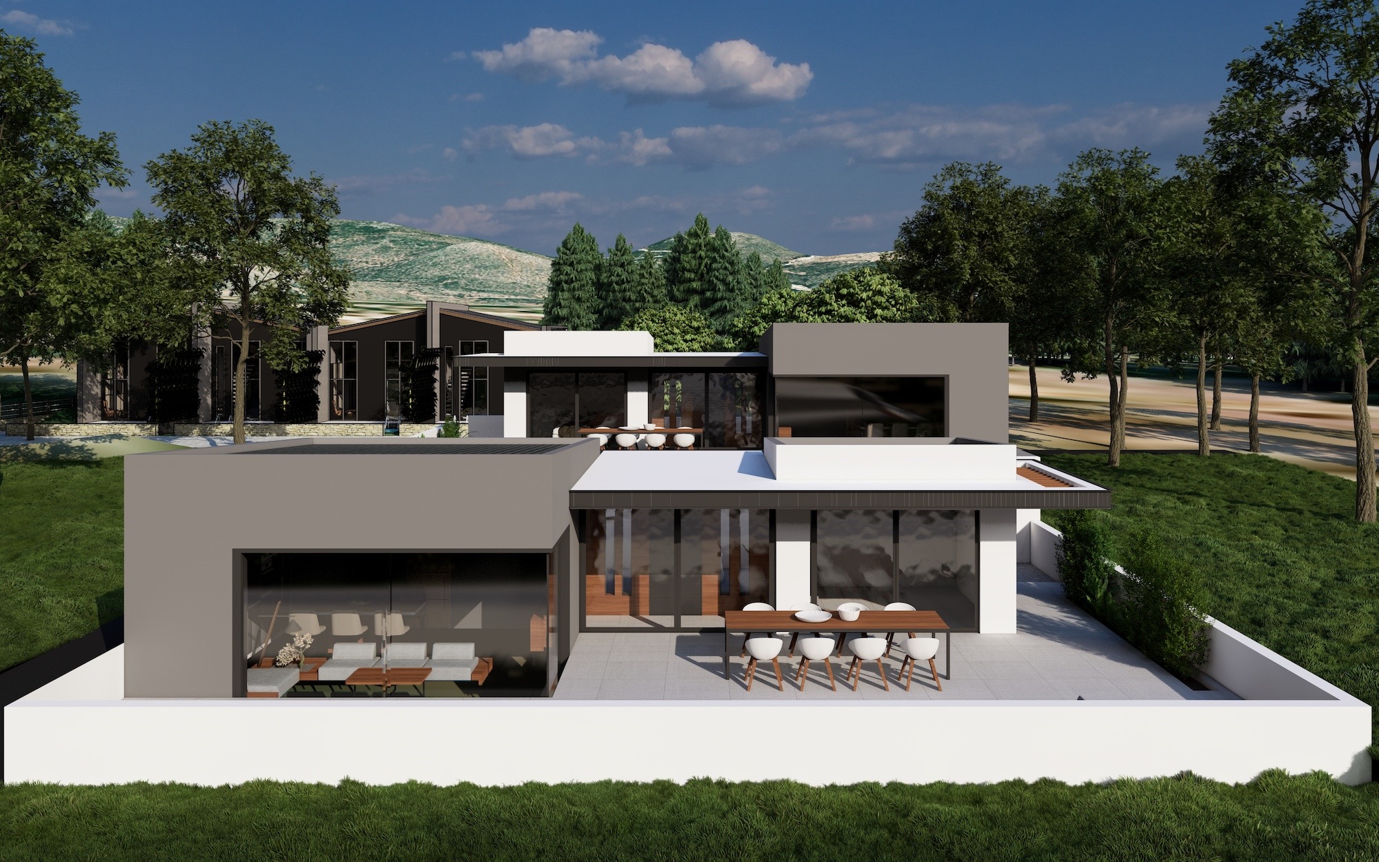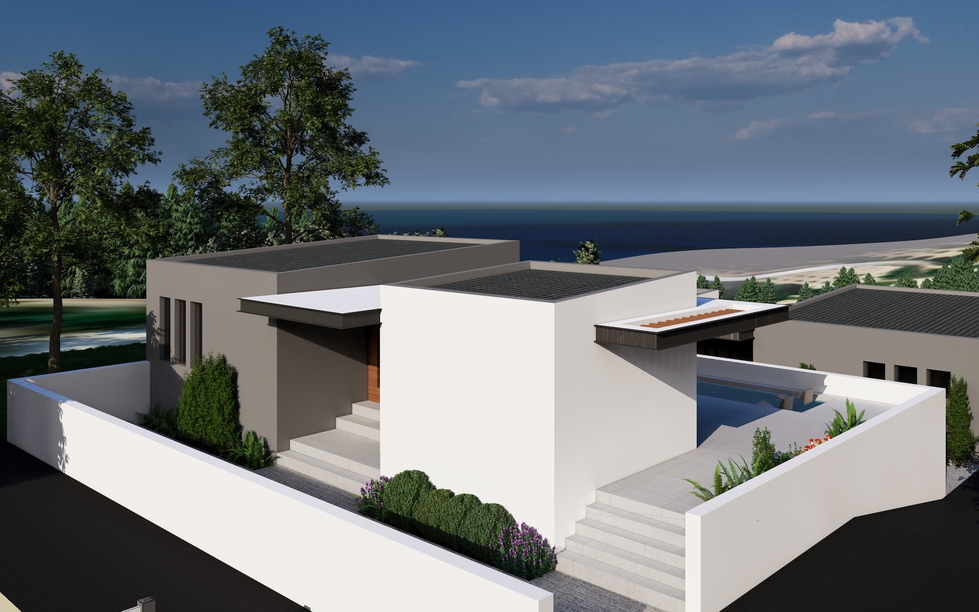 The house is designed as energy efficient with a special thermal cell. It will have air condition in every room and a modern designed living room.