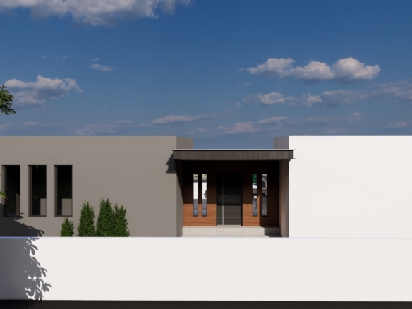 In brief, it is a 82m2 house, 2 bedrooms, 2 bathrooms, storage room, kitchen with cabinets, living room, 100m2 outdoor tiled area, 30m2 open air parking place, ground level lounge area with pergola, pathway to the house & 27m2 modern design pool.