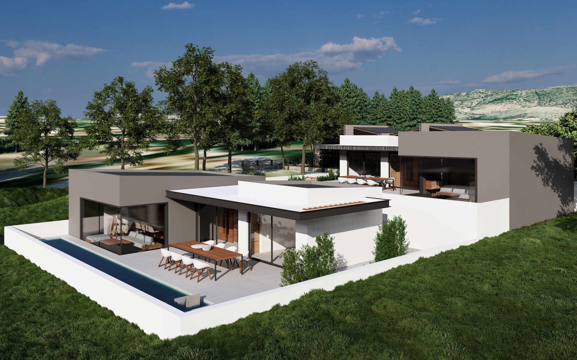This newly designed exclusive fully detached villa (CONSTRUCTION will start Mid 2024) seduces with its modern architectural elegance and aesthetic appeal. It is located in Pessada Village, in Kefalonia, and it has a very spacious swimming pool, outdoor dinning area, garden and lots of features!